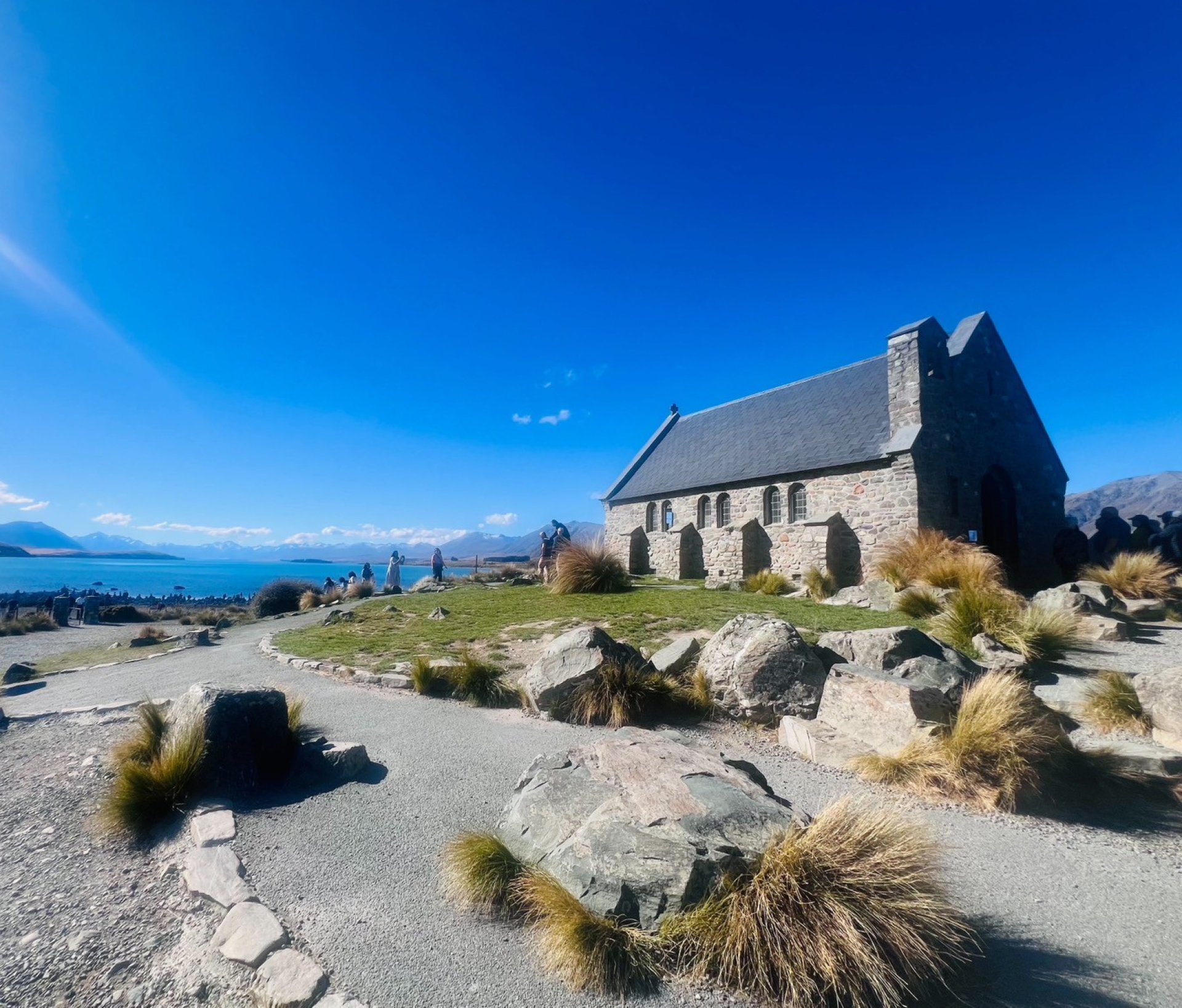 โบสถ์หินเล็ก ๆ แห่งนี้ถูกสร้างขึ้นในปี 1935 เพื่อเป็นอนุสรณ์แด่ผู้บุกเบิกแถบ Mackenzie Basin แต่สิ่งที่ทำให้ที่นี่โด่งดังกว่าความเก่าแก่ คือ วิวเบื้องหลังที่สวยเกินจริงทะเลสาบสีฟ้าเทอร์ควอยซ์สดใส รายล้อมด้วยเทือกเขา Southern Alps ที่ปกคลุมด้วยหิมะ